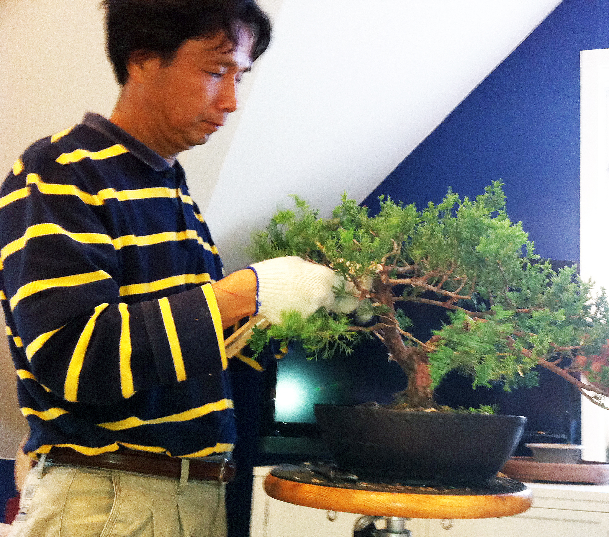 I am impressed by his skill and experience in bonsai.