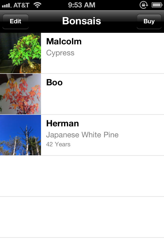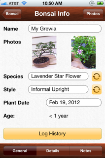 The second app I looked at is a more serious tool. It’s called Bonsai Album and is the dream app of every OCD bonsai nut. An inventory tool similar to Bonsai Manager, it is far better written and much more comprehensive, allowing you to track the progress of your trees, keep individual progress logs for each tree, add multiple photos, check stats, backup your database, and even photograph and catalog your pot collection with pot type, size and maker.