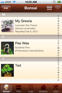 The first is called Bonsai Manager and it’s a pretty rudimentary tool for cataloguing your collection. You can add a photo, species and common name, and even a given name for each tree like “Ralph.”