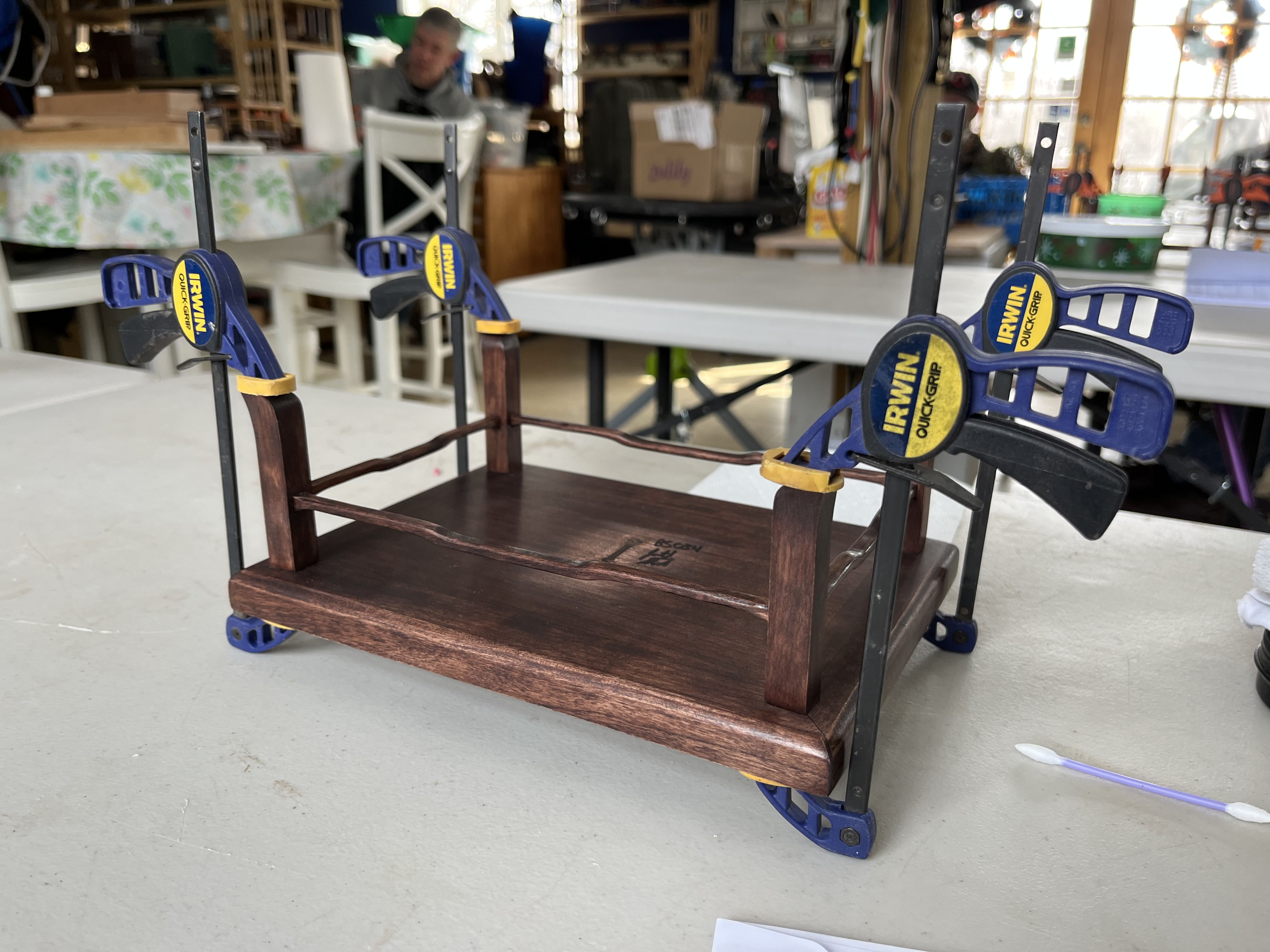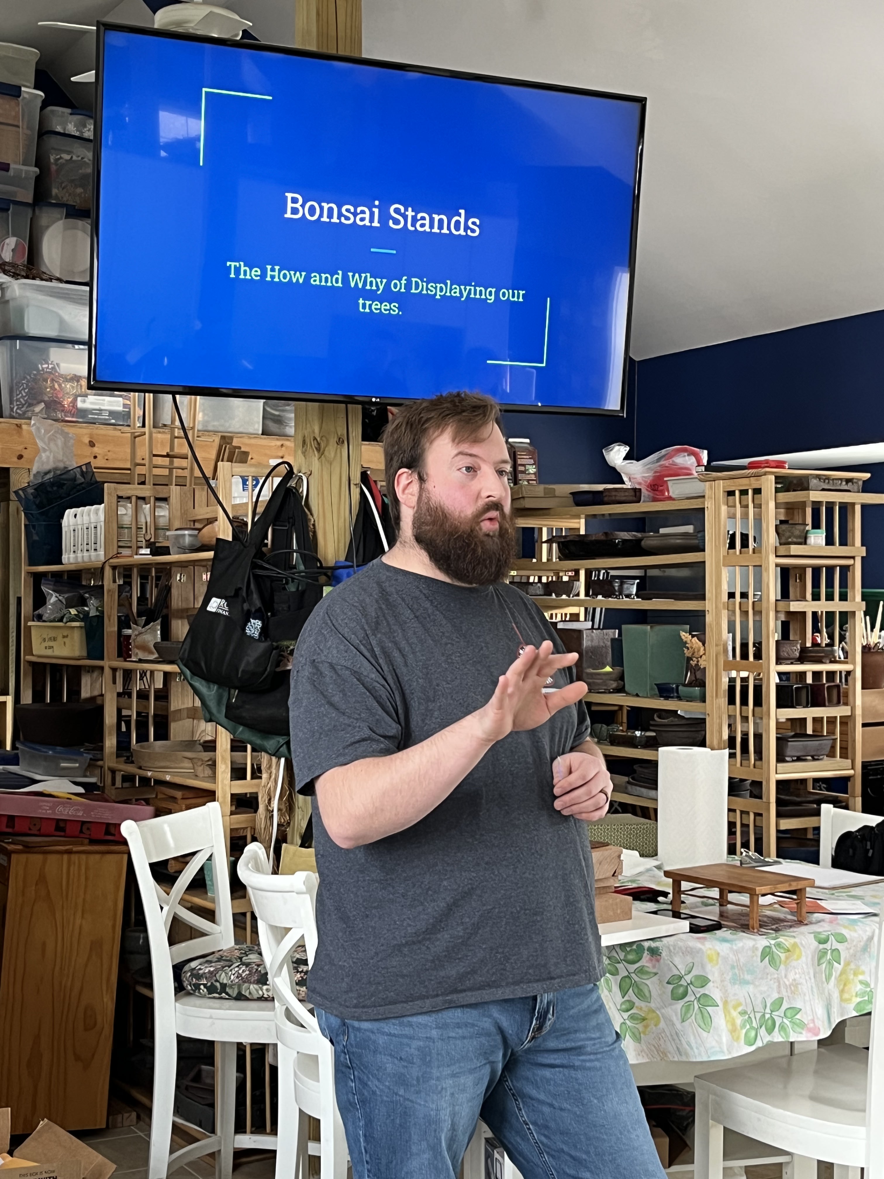 Jon Stewart hosted a stand building workshop for club members that was completely booked. Mr. Stewart brought rough pieces for the shohin sized stands for members to assemble and finish/polish during the workshop.