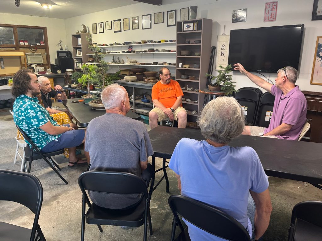 After the club meeting and early discussions regarding the upcoming club show (Albany Center Gallery, Oct 7-8, 2023) the club hosted a bring your own tree workshop where club members brought their own trees in development, to work on, or for styling ideas and advice.