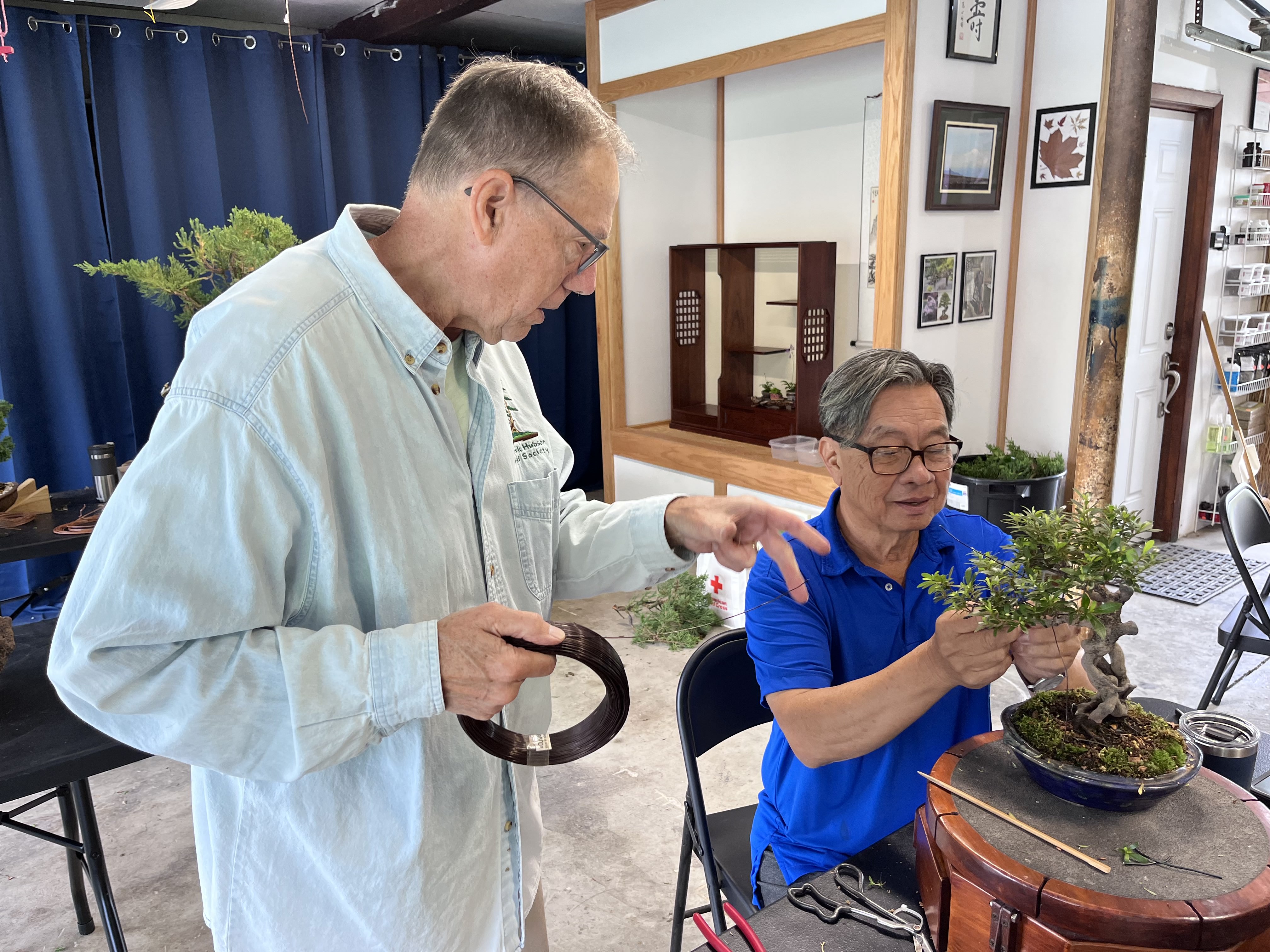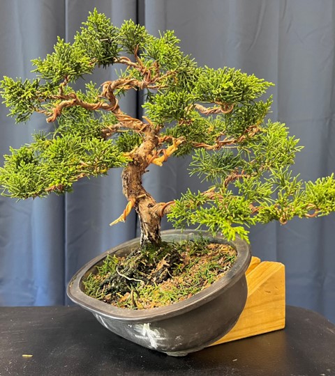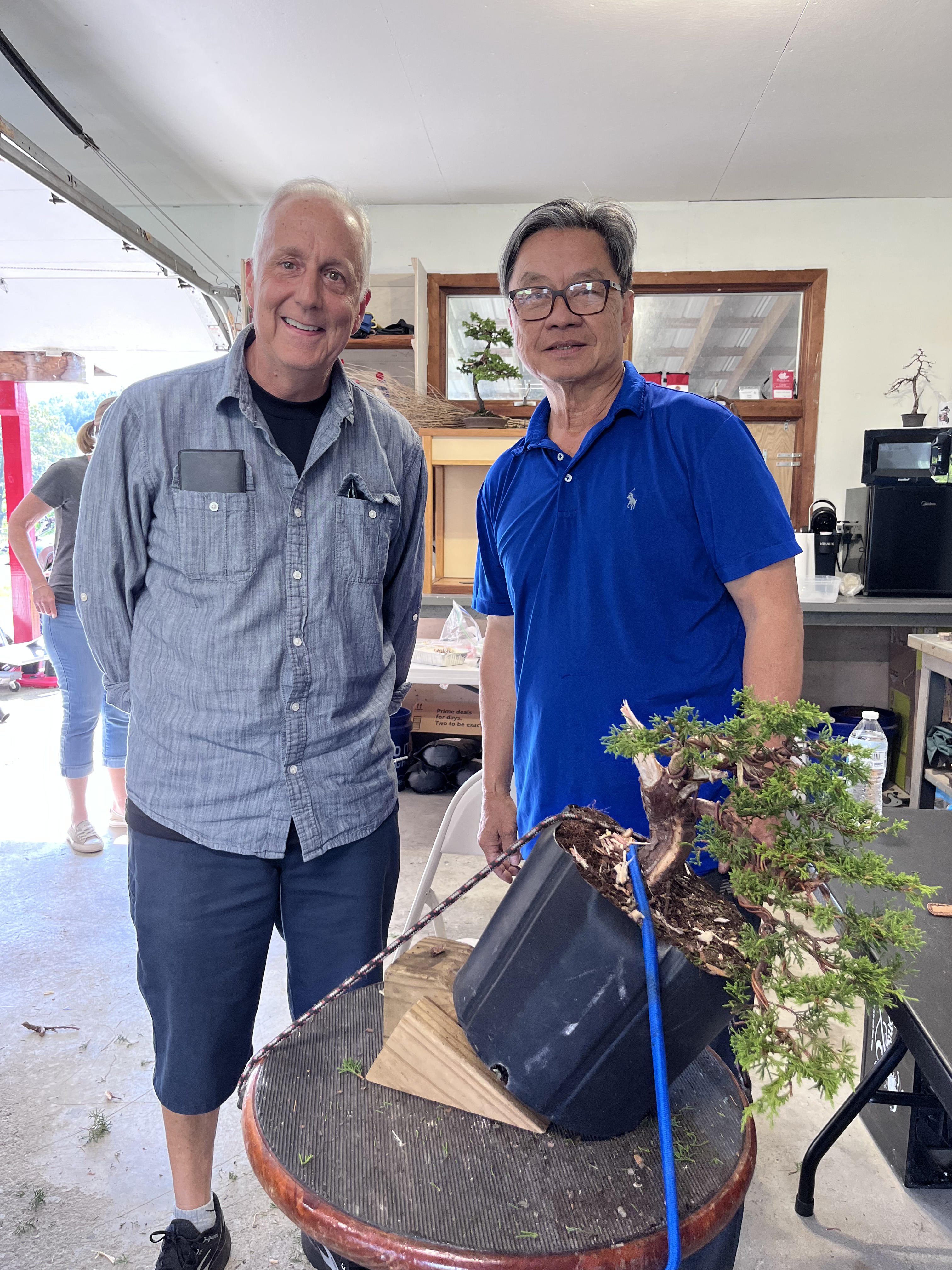 attendees as he works. Suthin worked on an Itoigawa Juniper, reducing it substantially to create a wonderful tree for its new owner, Jon Staples, who won it in our raffle.