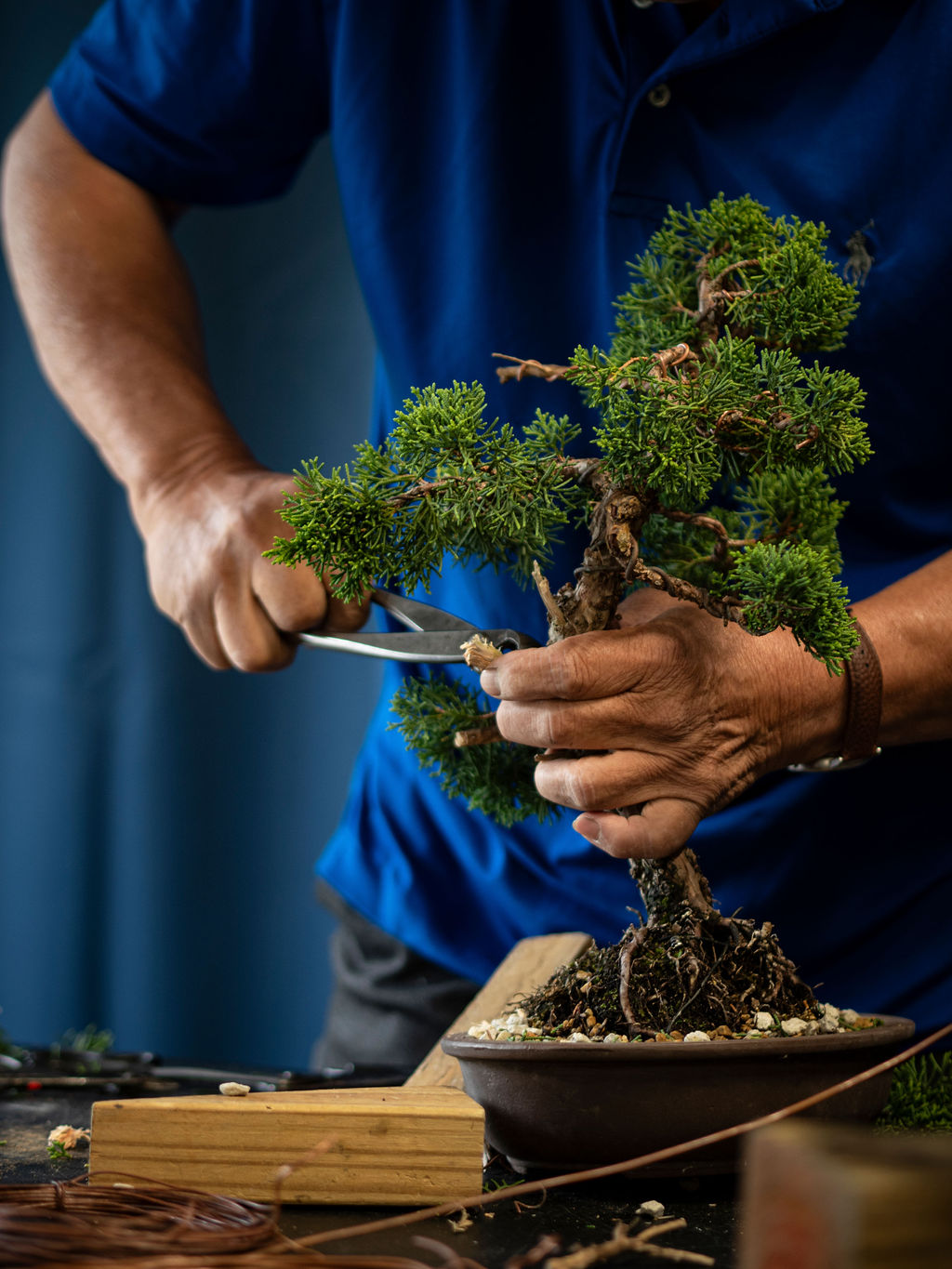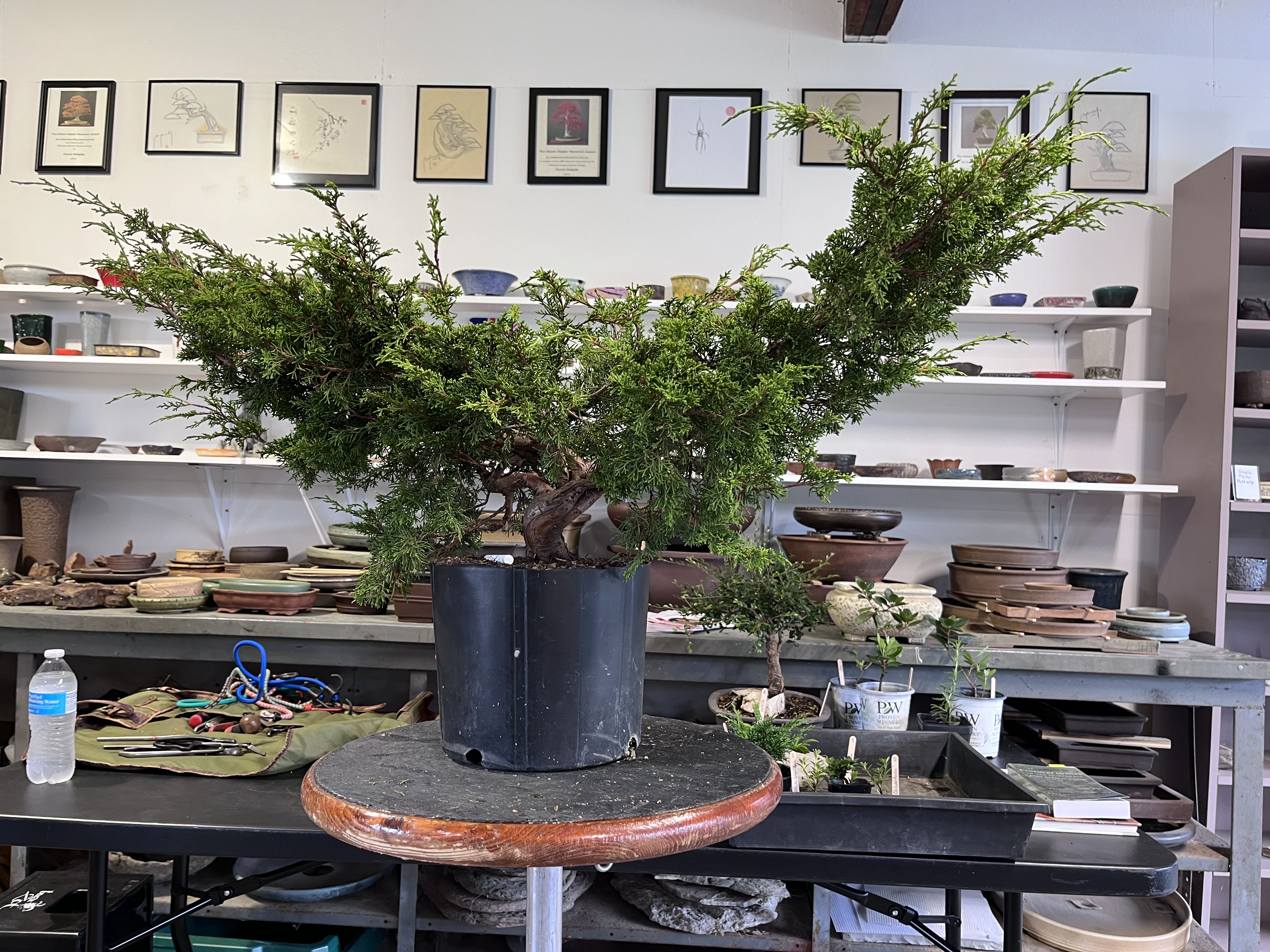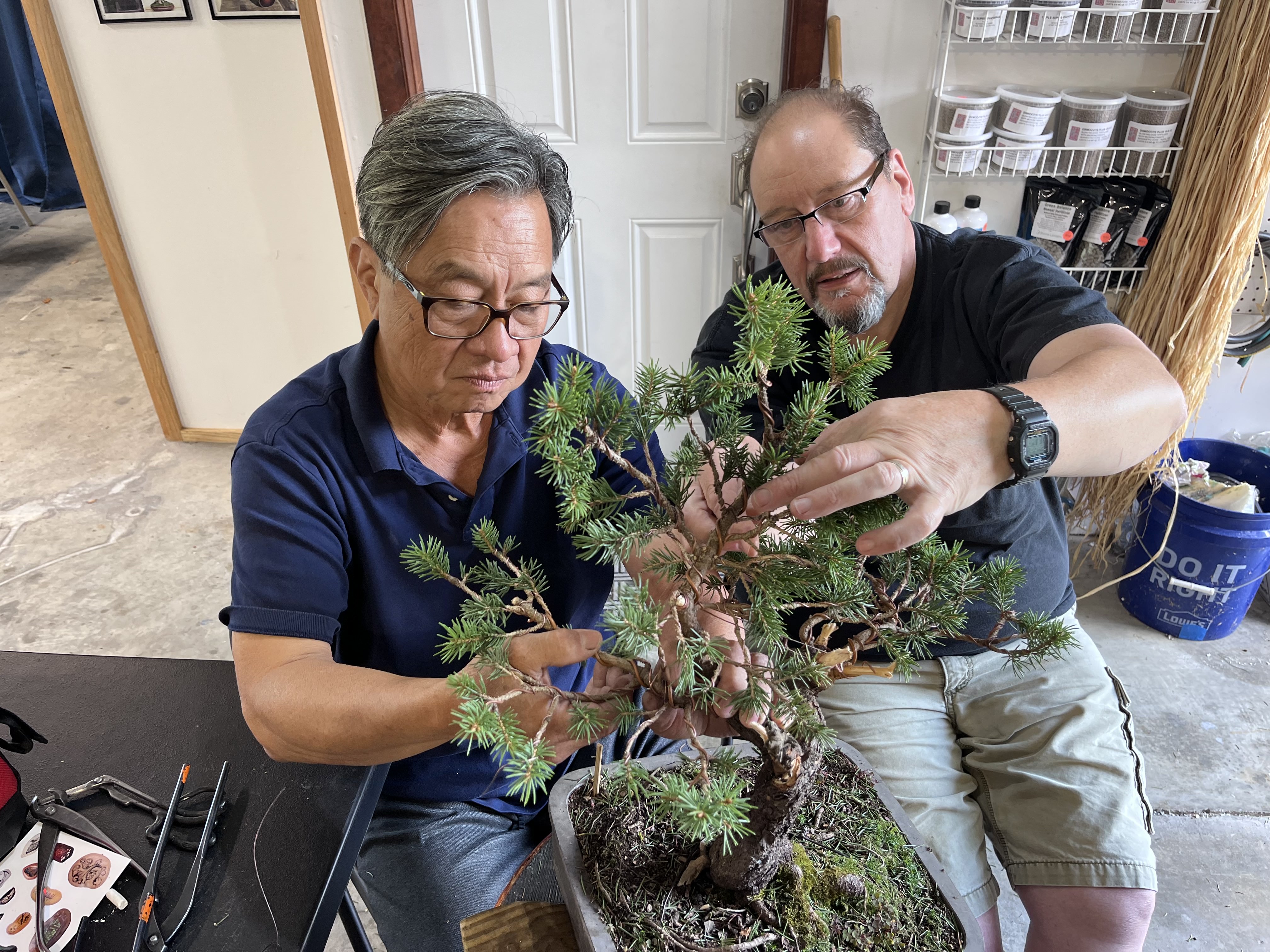 He started each workshop by discussing a tree brought by each participant, allowing us to hear his thinking and suggestions on a nice variety of trees. Most participants brought trees to look for guidance on major design decisions, something Suthin excels at. And he is not afraid to cut (with permission, of course!!). There were many dramatic transformations as our trees took shape under Suthin’s watchful eye.