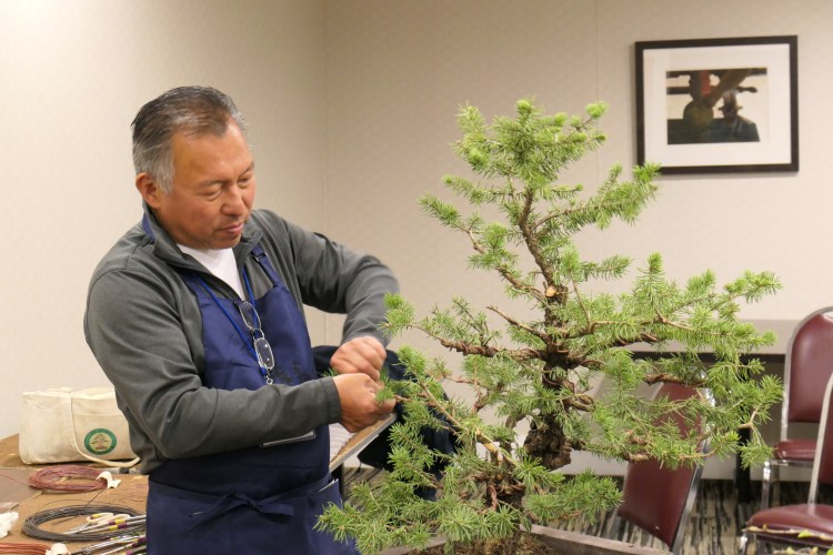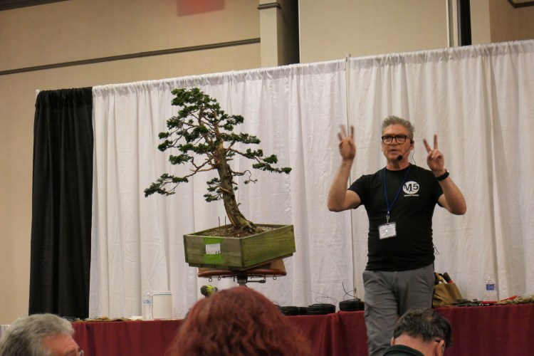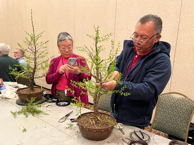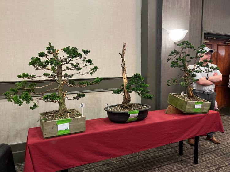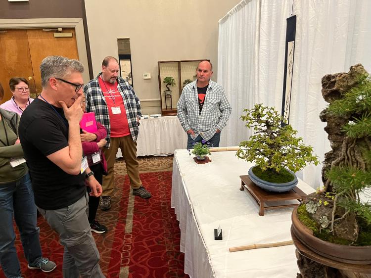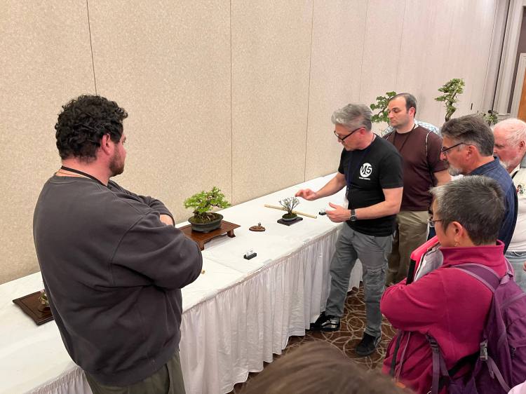 A highlight of every MABS Spring Festival is the Club Exhibition, where all affiliate clubs display trees owned by club members. The three guest artists walked the tree exhibit to provide valuable critiques of some of the trees. This year, MHBS had four displays featuring seven trees.