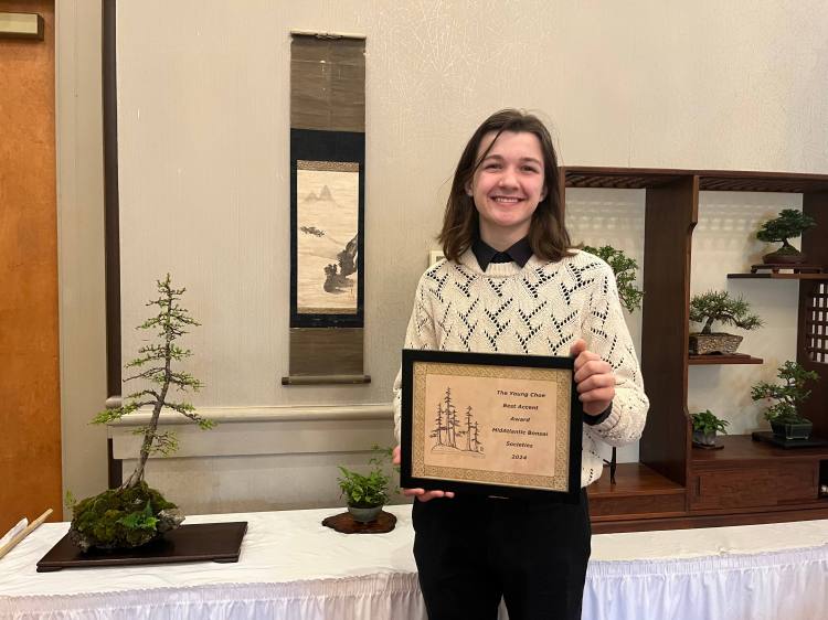 Special congratulations to MHBS member Julian Shepersky who won The Young Choe Best Accent Award at the 2024 MidAtlantic Bonsai Societies Spring Festival! Julian’s beautiful accent plant was shown alongside his American Larch.