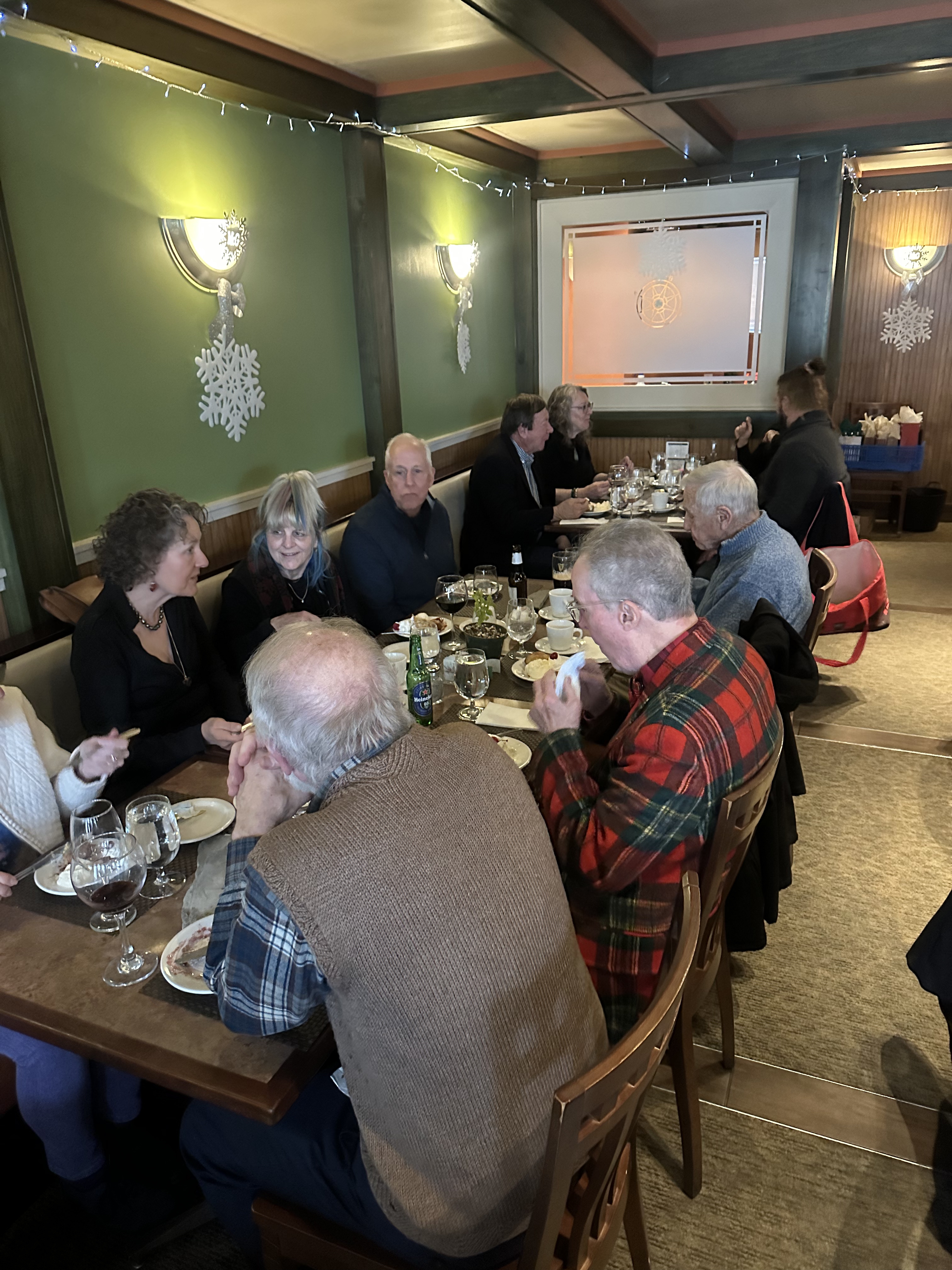 The holiday party and luncheon was great fun with 35 members and guests at McGreivy’s in Waterford for the second year running! It was wonderful to see many long time members as well as new members and friends.