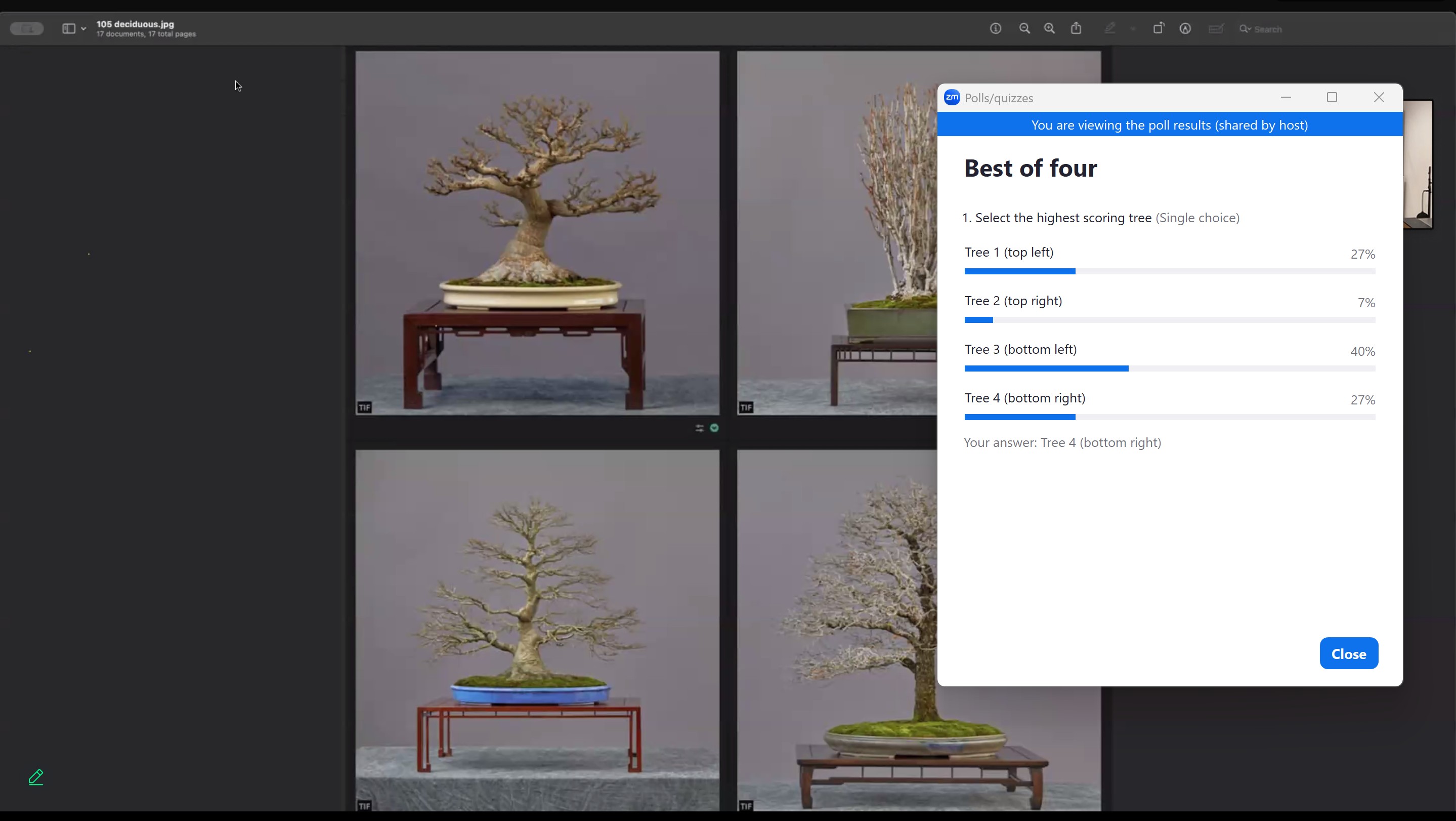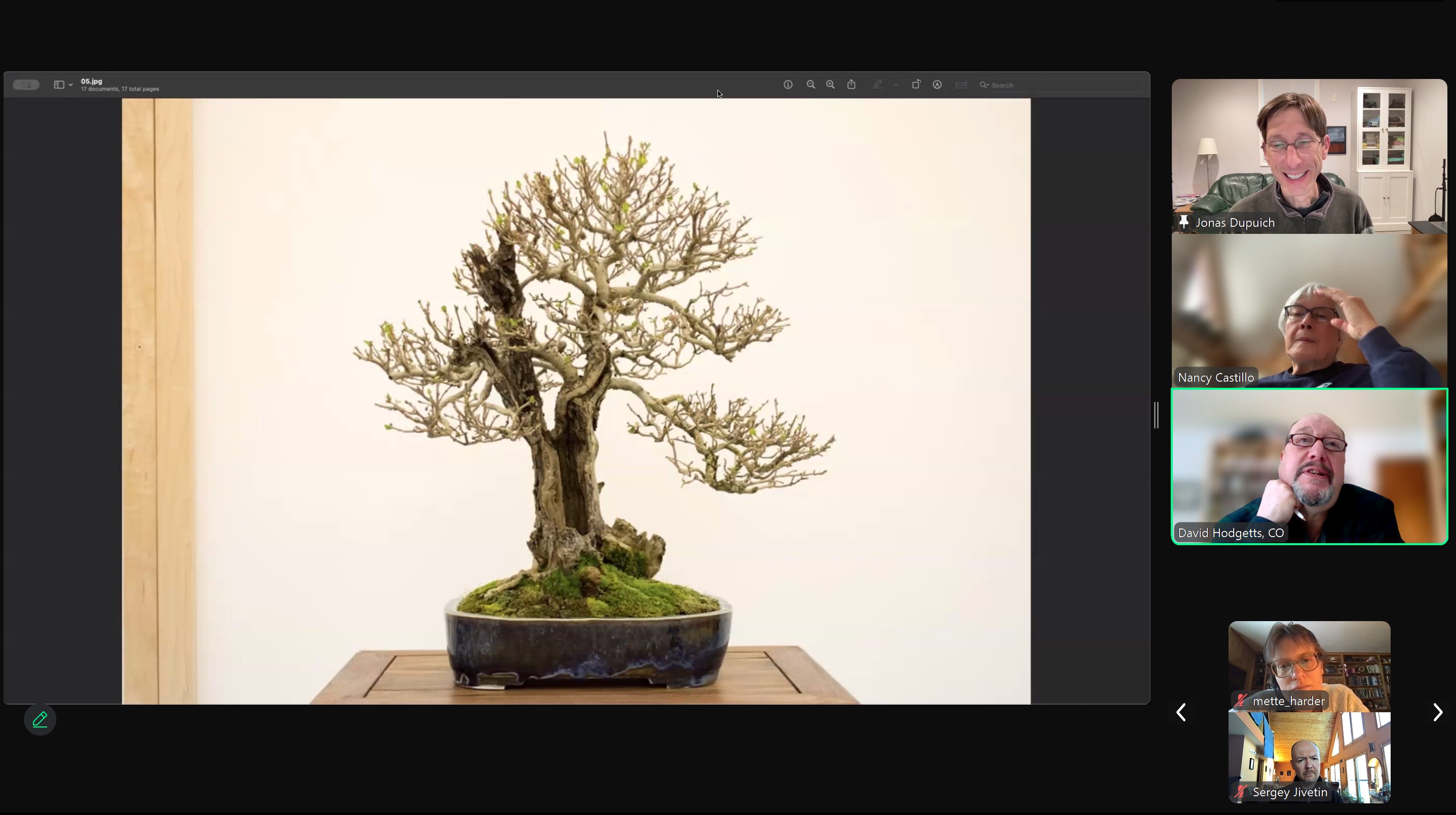 Jonas began with examples of different types of trees in differing stages of development and refinement, going over each with both his own critique and thoughts as well as engaging club members for theirs both directly and via live polling during the presentation.