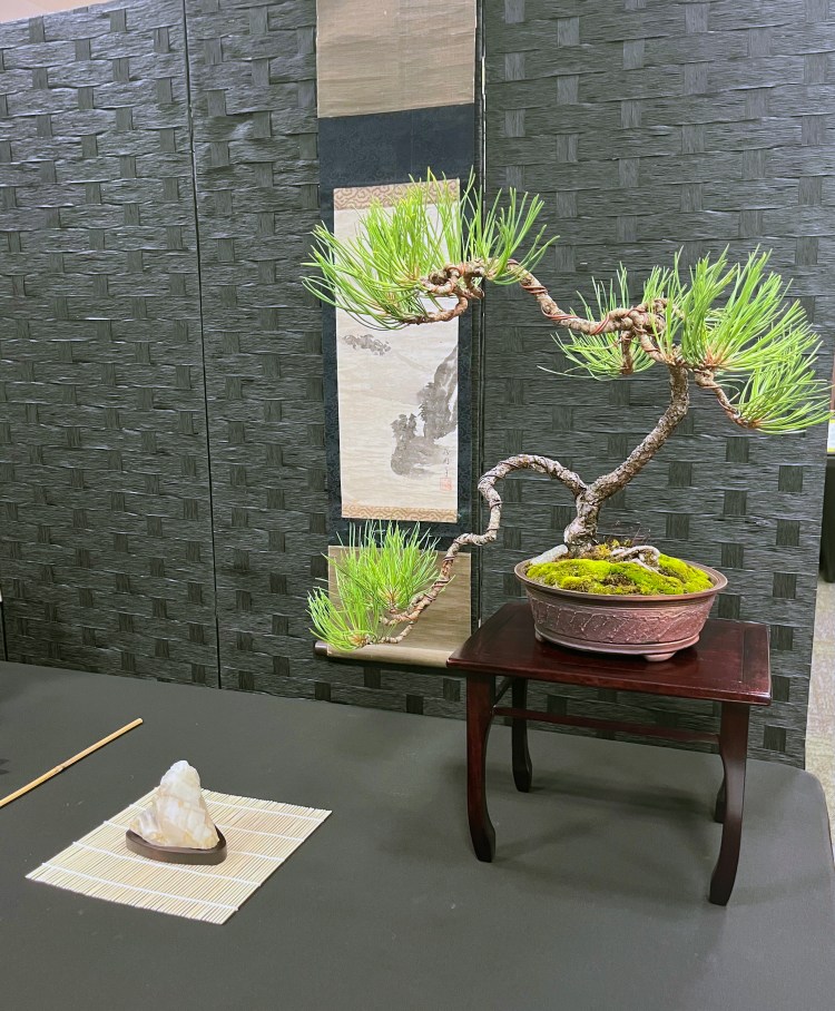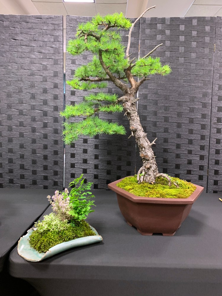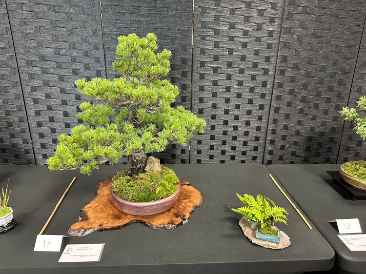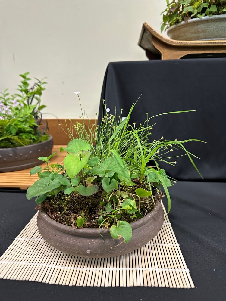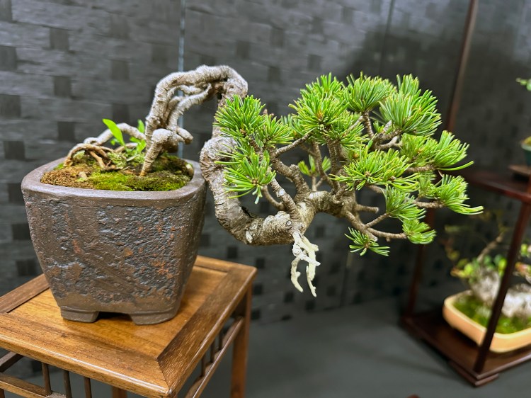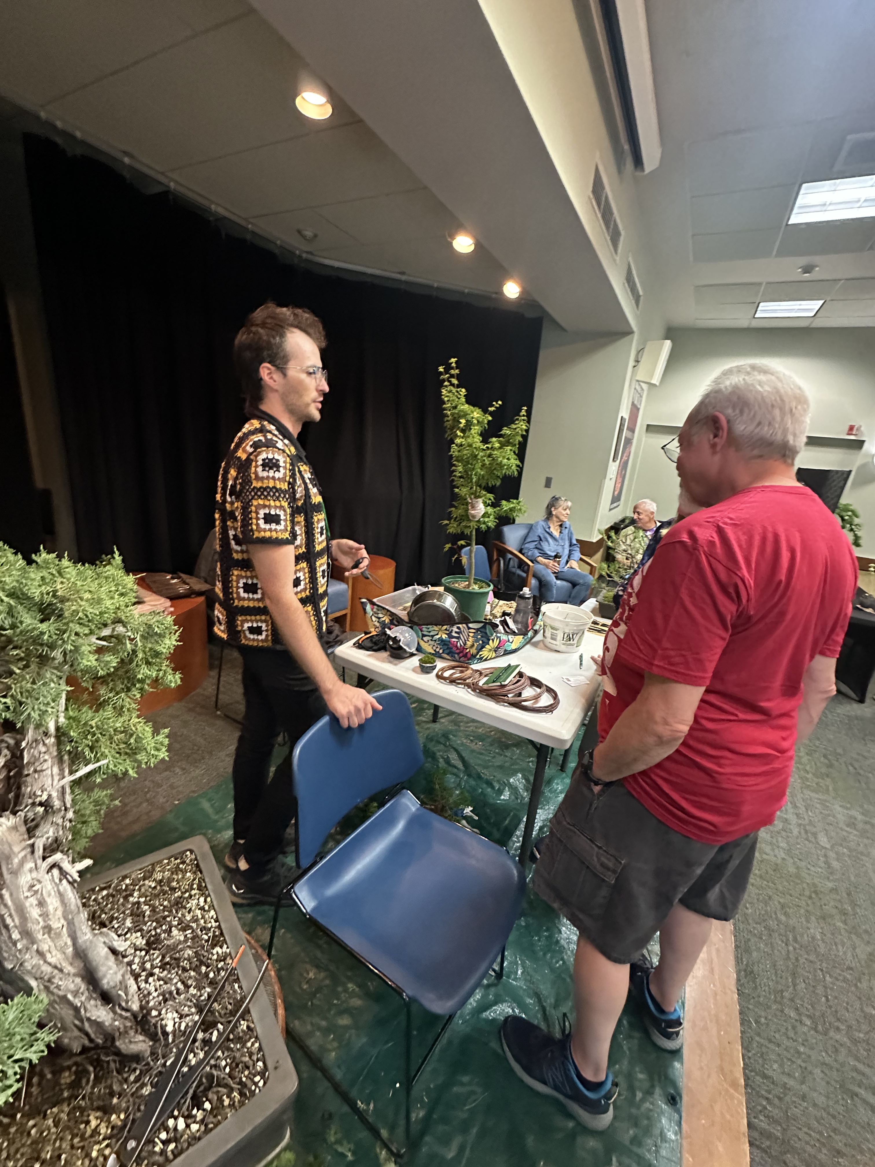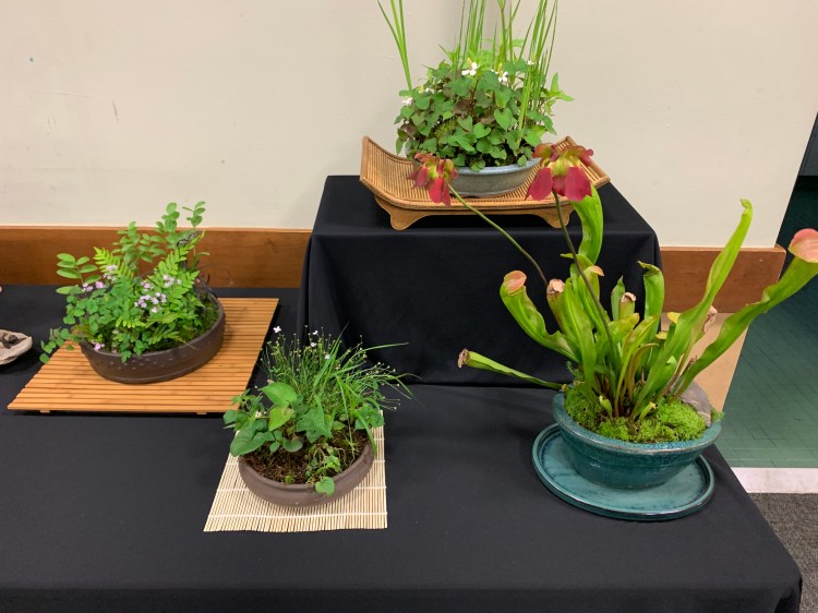 There was a kusamono table, a pot display, several members doing tree work demos on the stage, and of course lots and lots of wonderful trees on display. Members milled around during the show answering questions from and engaging with visitors.