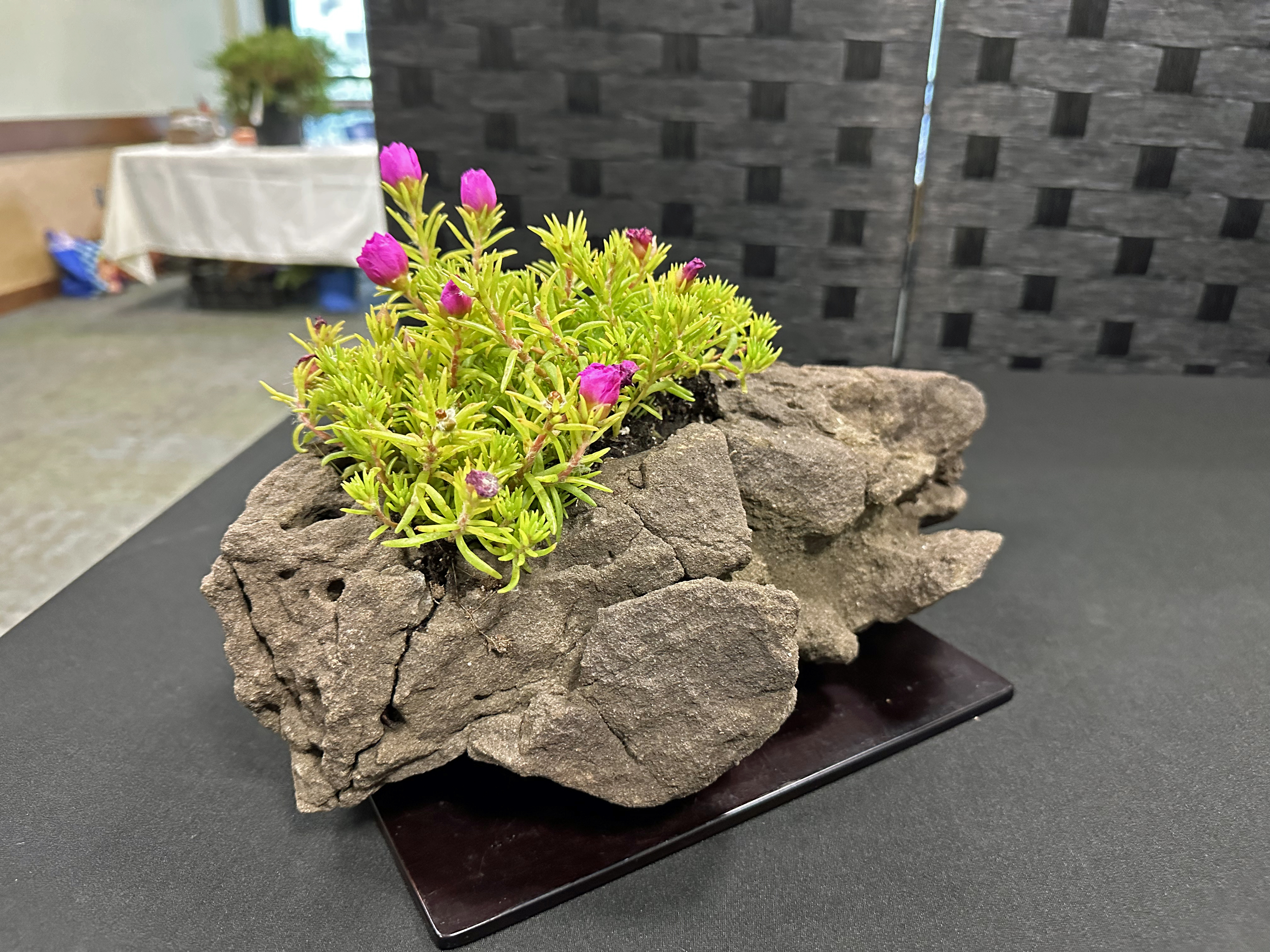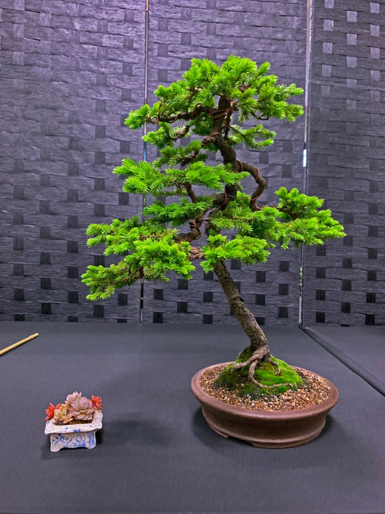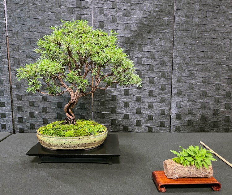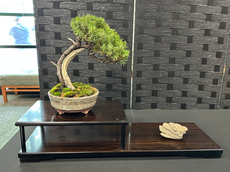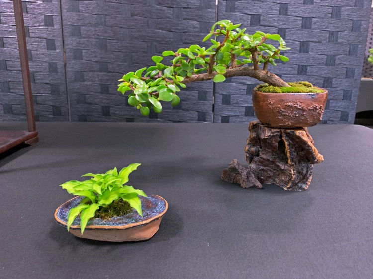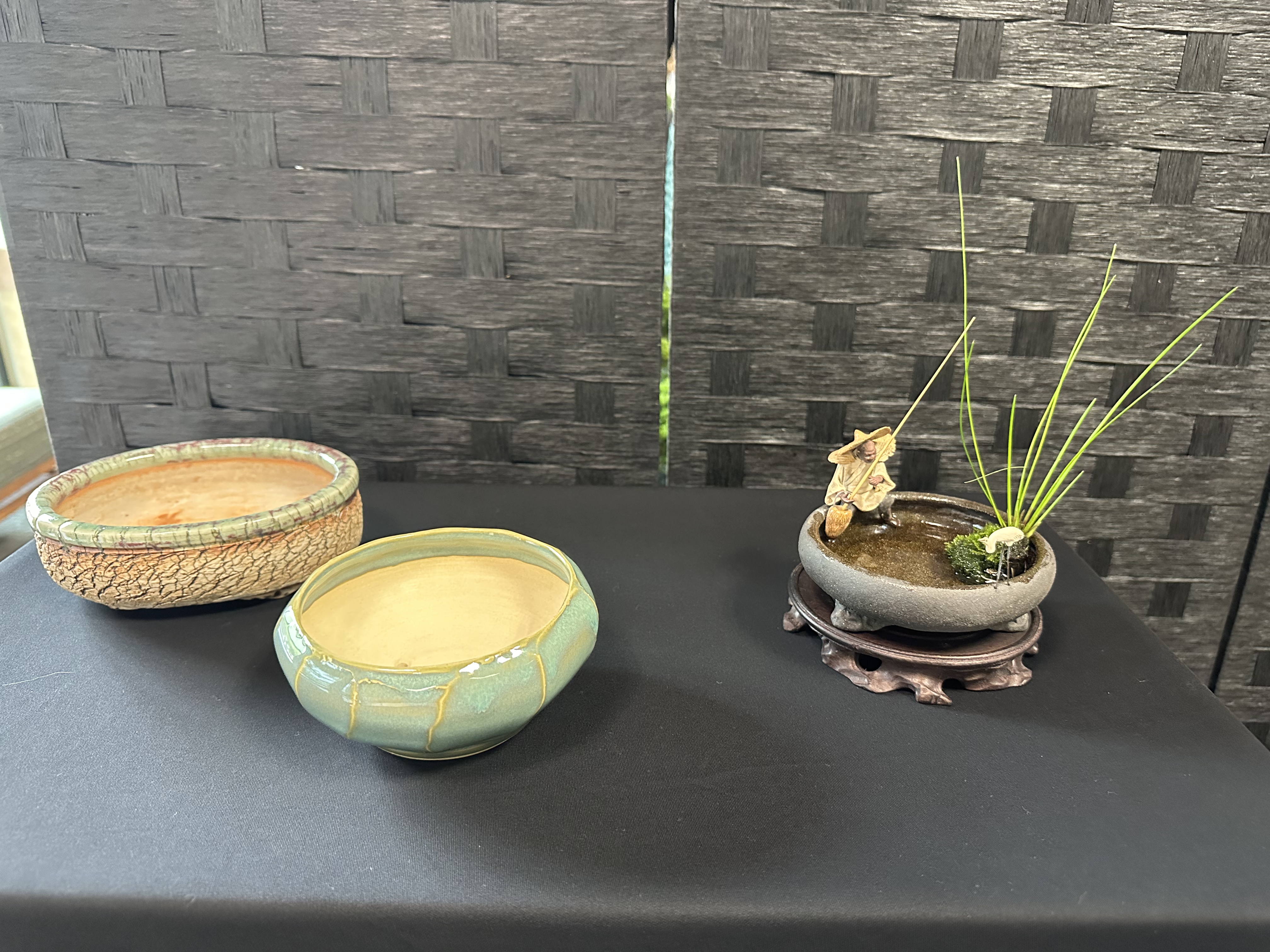 There was a kusamono table, a pot display, several members doing tree work demos on the stage, and of course lots and lots of wonderful trees on display. Members milled around during the show answering questions from and engaging with visitors.