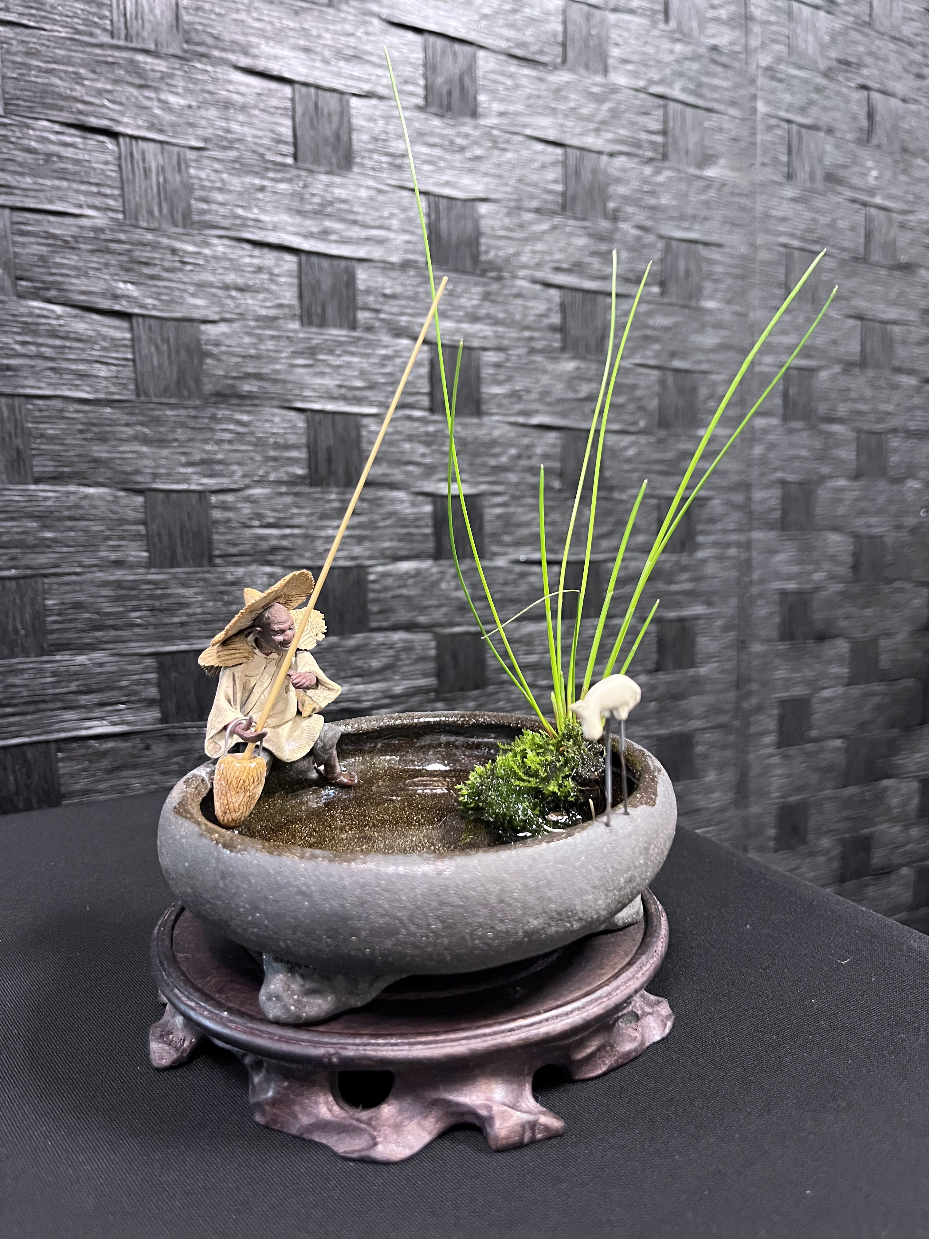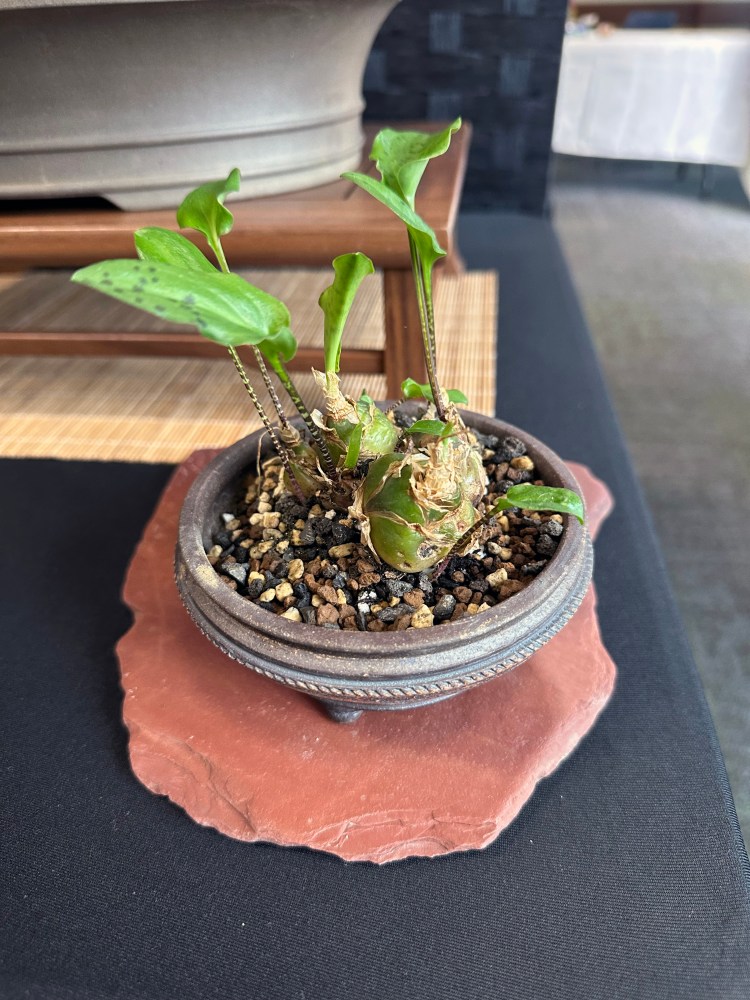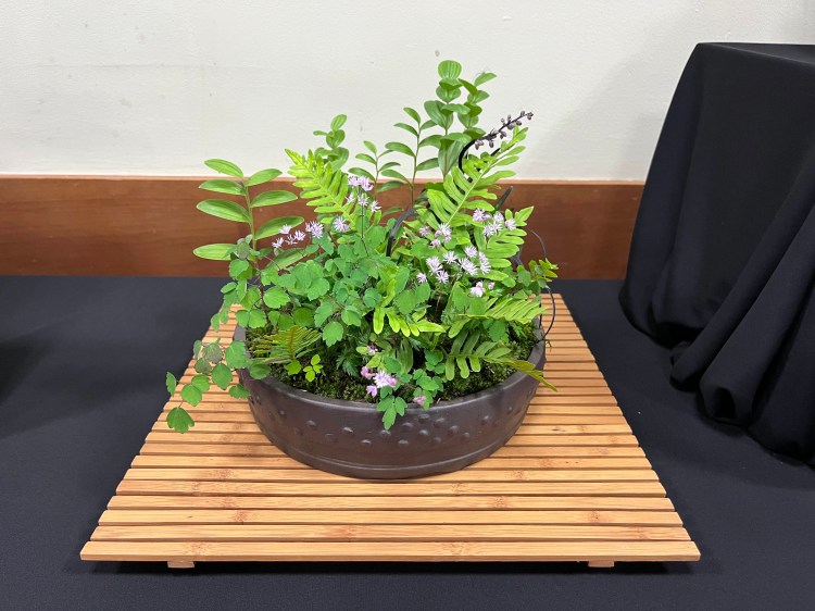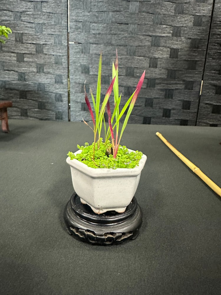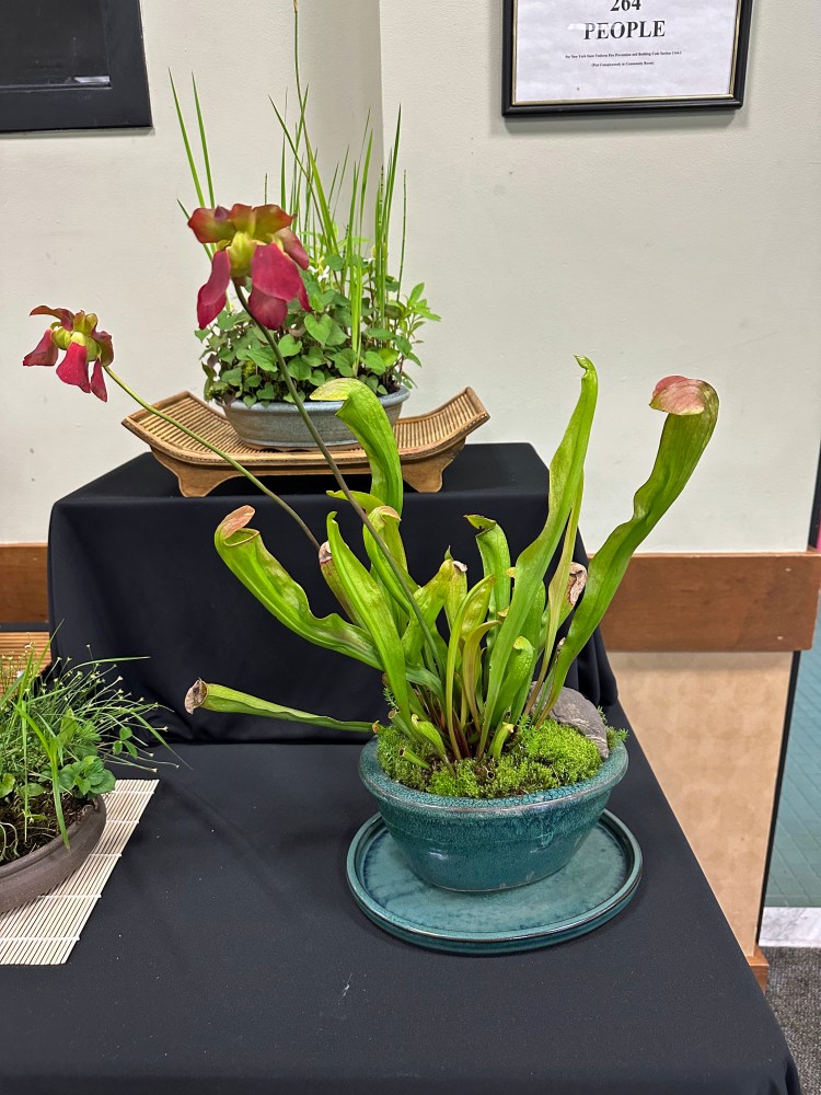 There was a kusamono table, a pot display, several members doing tree work demos on the stage, and of course lots and lots of wonderful trees on display. Members milled around during the show answering questions from and engaging with visitors.