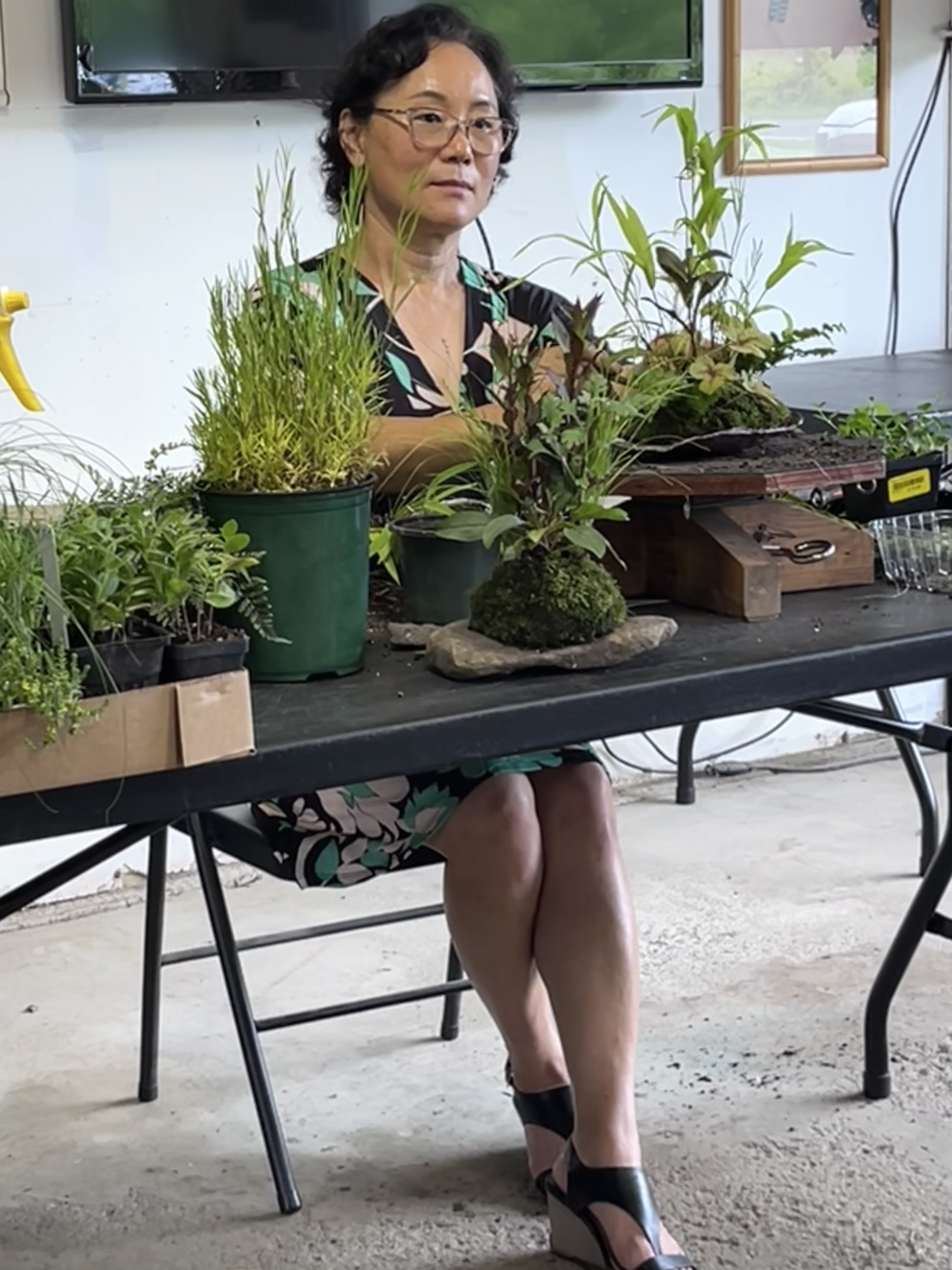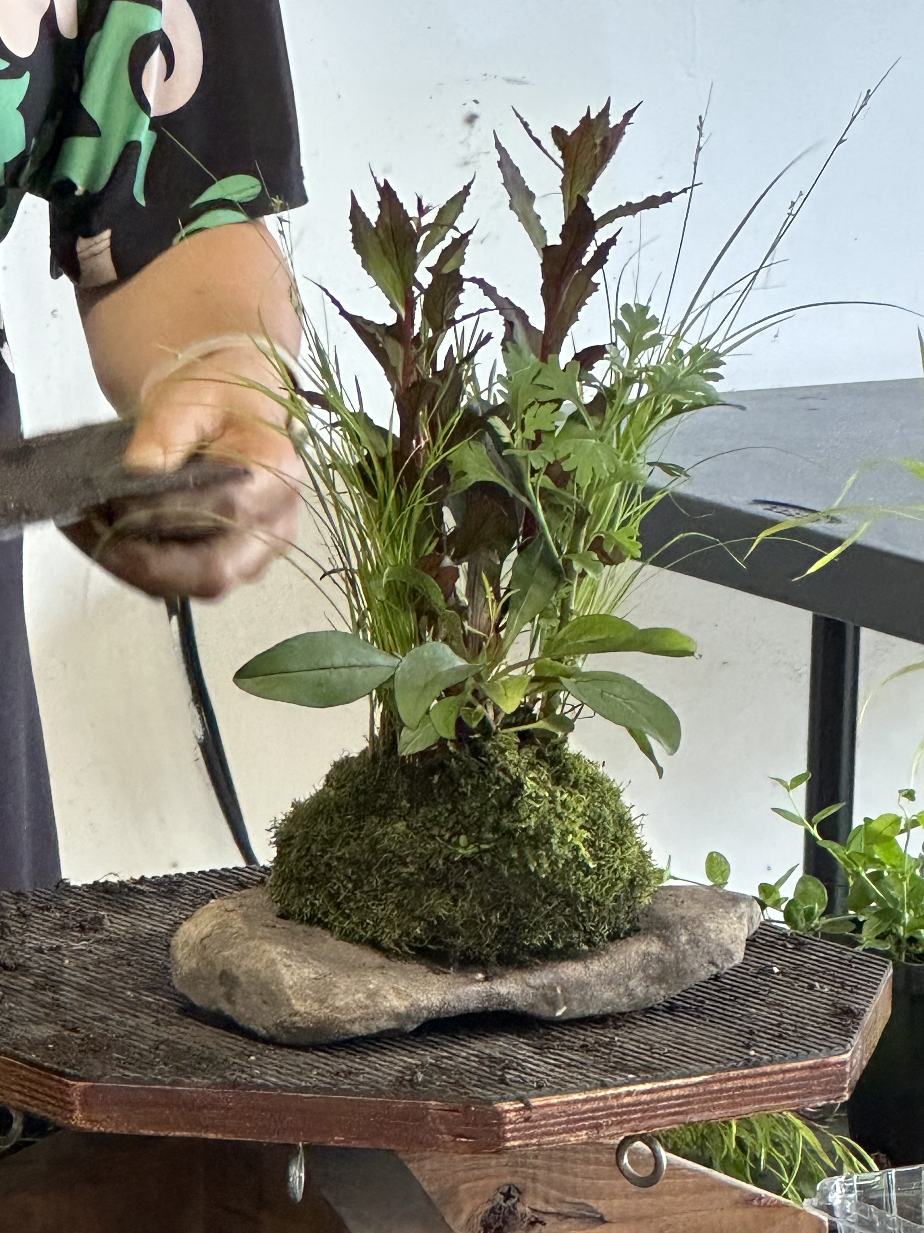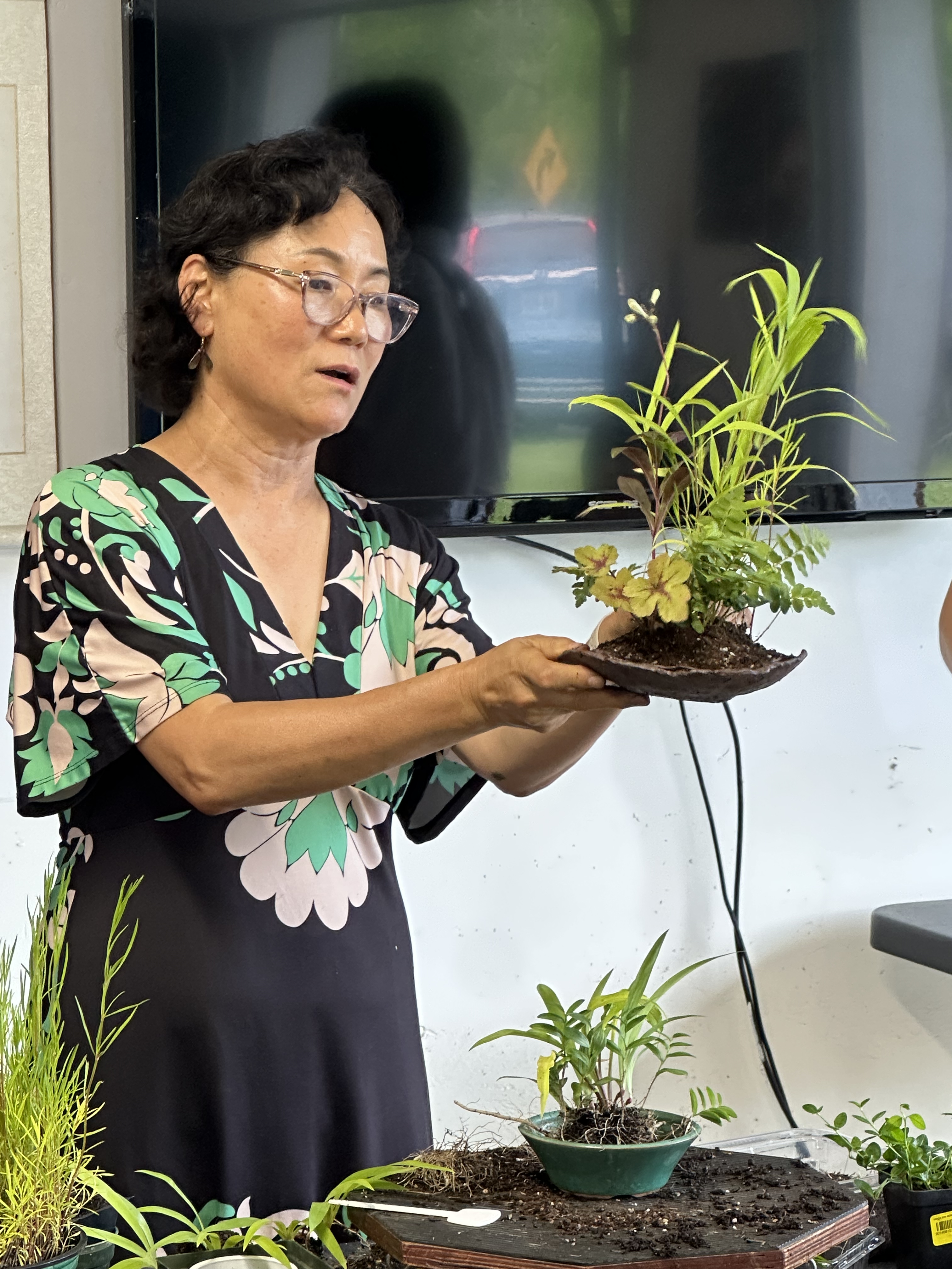 Following the presentation attendees were treated to a demonstration of Ms. Choe assembling several kusamono. Two finished pieces were then raffled, and won by Brandon Herwick and Tara Papura (Tara graciously gifted her planting to Julian Shepersky).