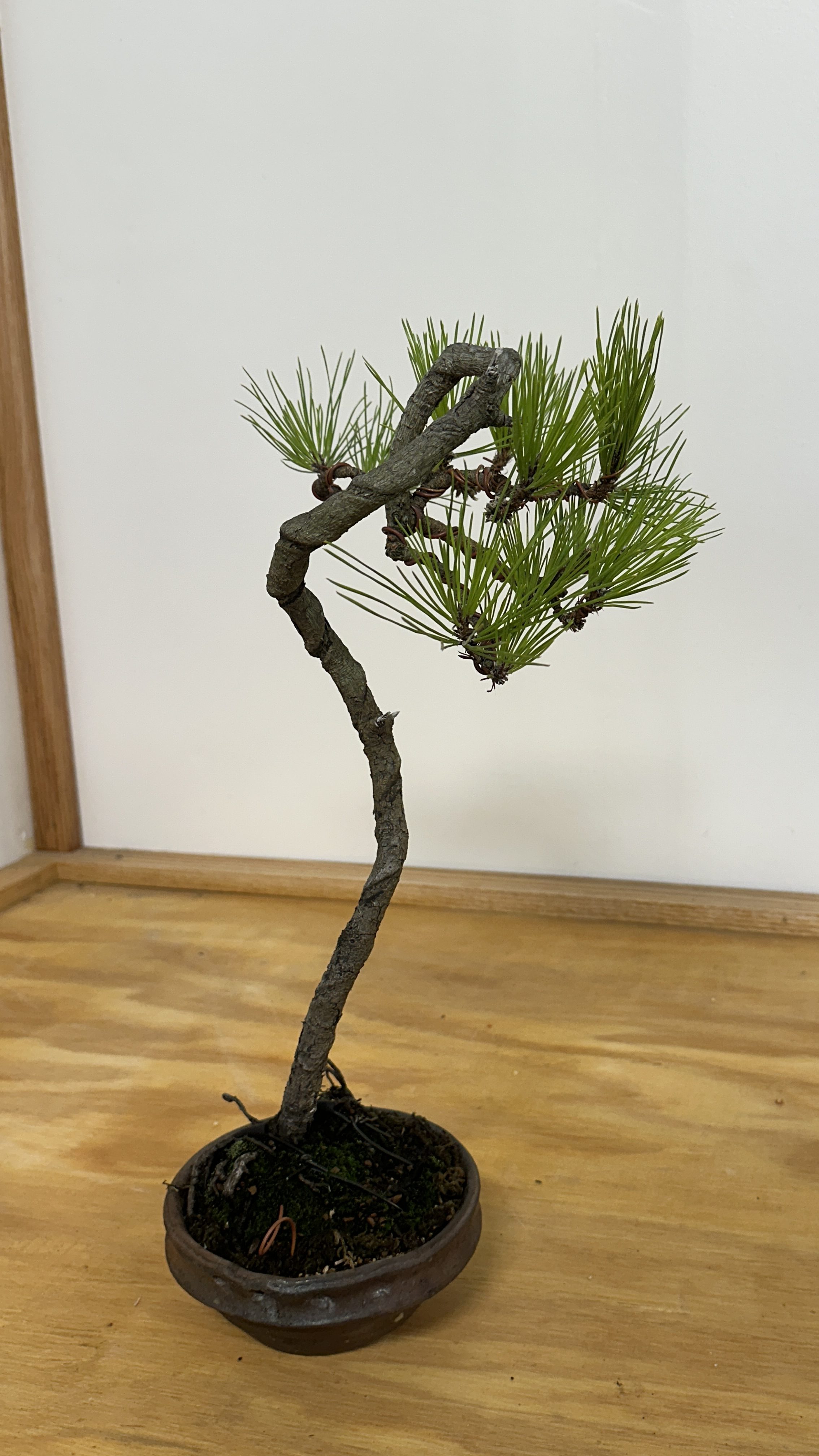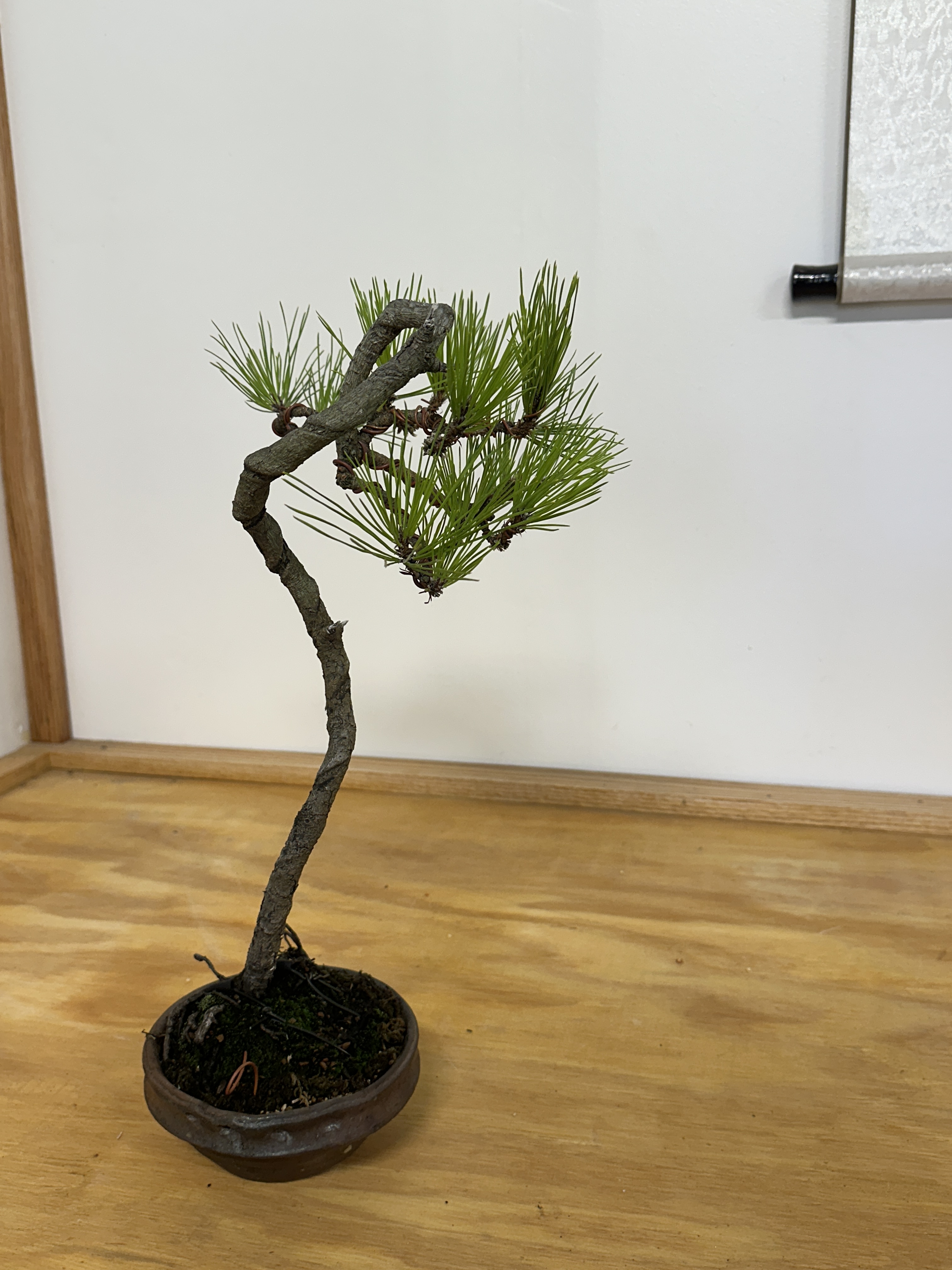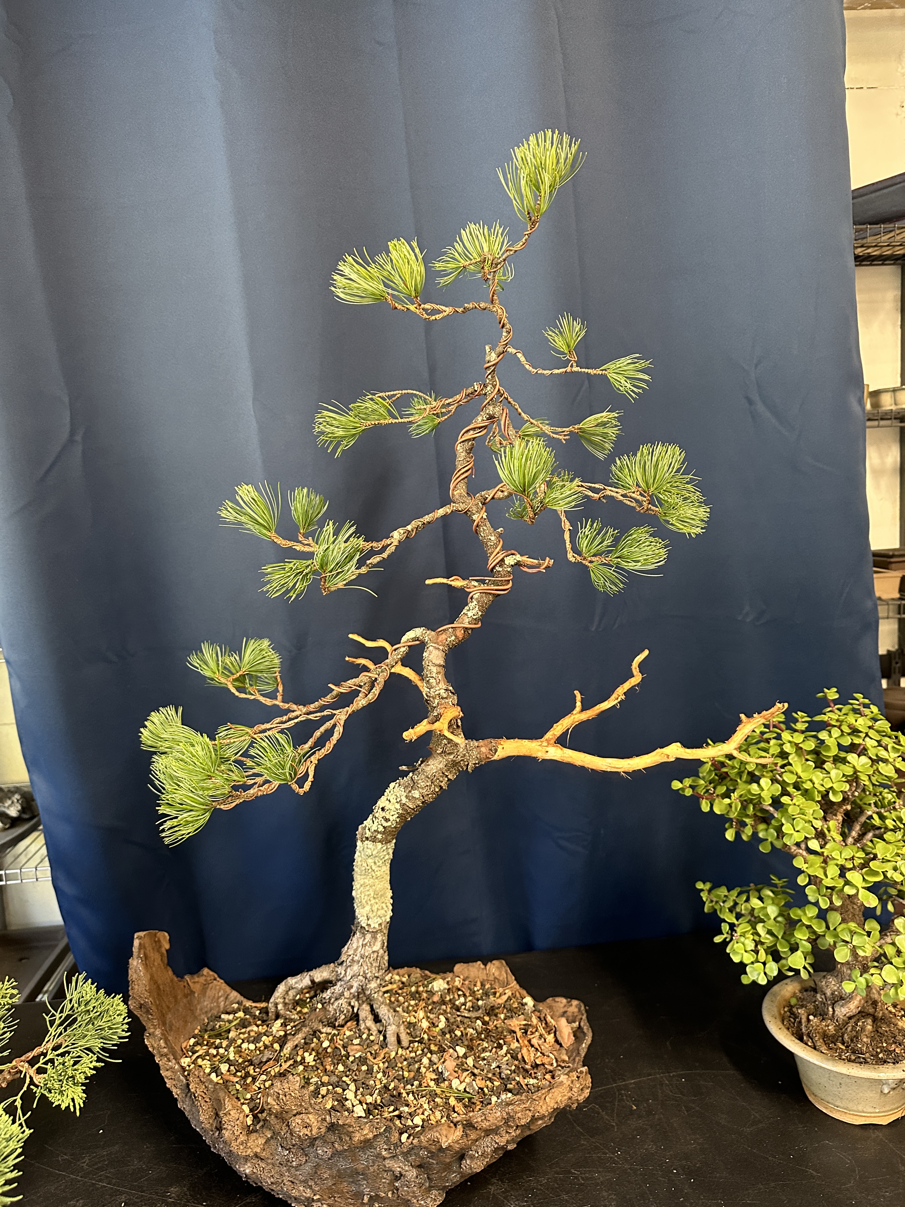 After the presentation, Jon worked on a red pine tree during his demonstration with help from our own David Hodgetts. He applied a double wire for a more severe trunk bend and added a sweep back for his vision of the literati style this tree would grow into.